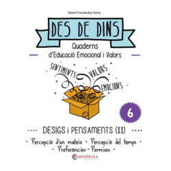 «Des de Dins» és una proposta d’educació emocional i en valors amb l’objectiu principal de potenciar el coneixement d’un mateix i dels altres amb respecte i acceptació. A través d’exercicis senzills se’ns convida a la interiorització, la reflexió i a la posterior expressió per prendre consciència del nostre món íntim i dels nostres recursos, alhora que adquirim competències emocionals, ètiques, socials i comunicatives. L’educador disposa d’una guia per afavorir la participació i el desenvolupament de les activitats. Aquesta guia la podeu descarregar en PDF a la secció «Descàrregues» o demanar-la a l’editorial i us l’enviarem per correu electrònic. També està a la venda en format llibre.